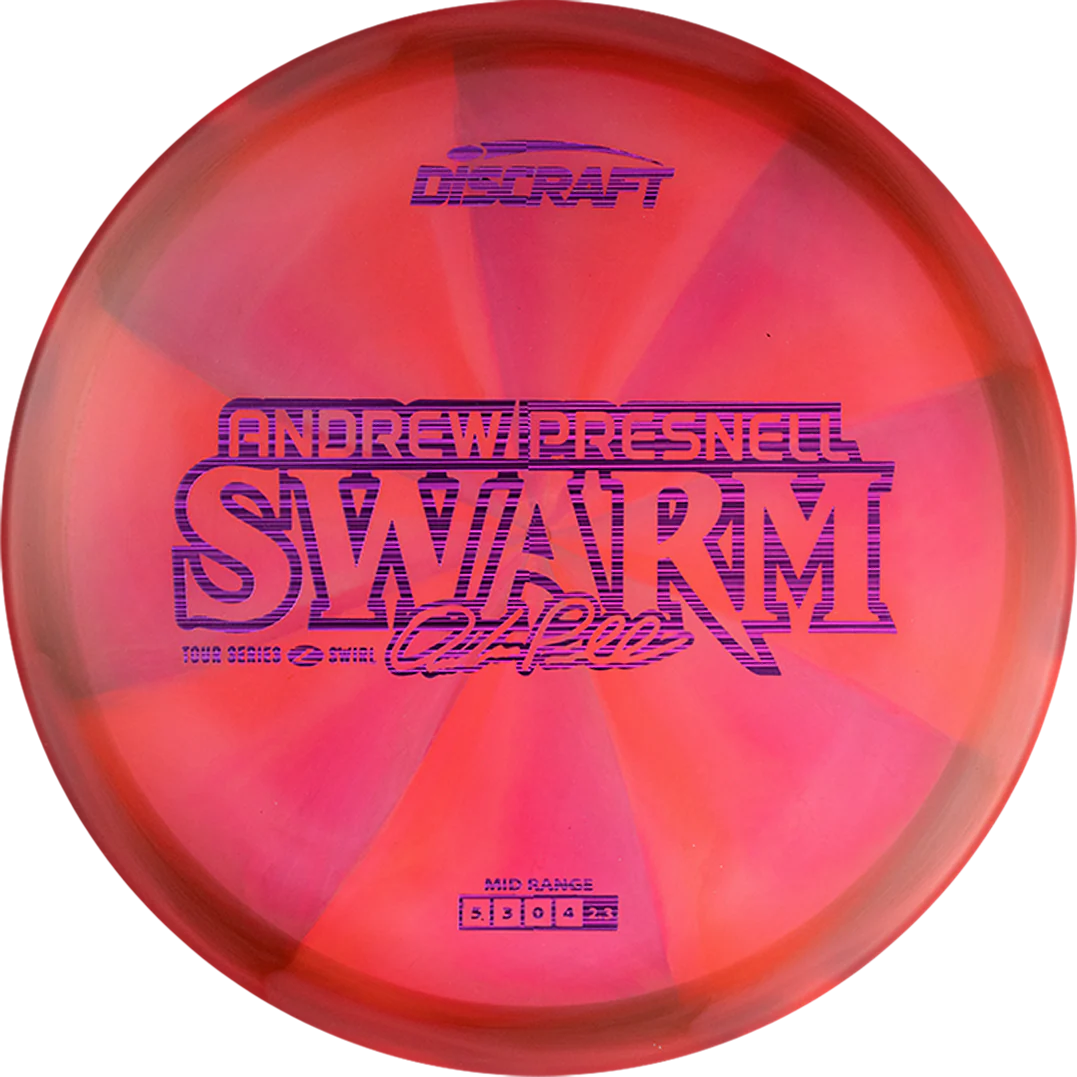 One of the latest additions to Discraft's lineup, the Swarm is a reliably overstable midrange designed to thrive in headwinds and high-torque situations. With a strong finish, the Swarm bridges the gap between approach disc and utility mid. The 2025 Z Swirl version adds enhanced grip and visual appeal, making it a dependable choice for forehands, skip shots, and hard-fading lines.